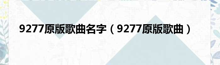大家好,小东方来为大家解答以上的问题。9277原版歌曲名字,9277原版歌曲这个很多人还不知道,现在让我们一起来看看吧!