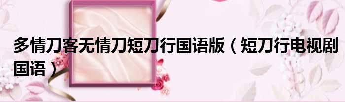 多情刀客无情刀短刀行国语版(短刀行电视剧国语)