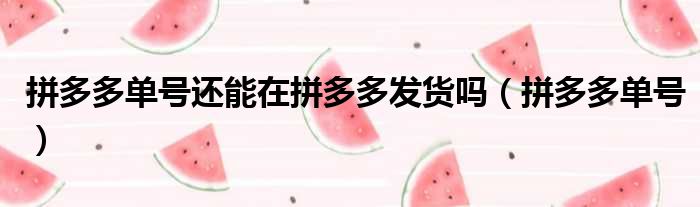 拼多多单号还能在拼多多发货吗(拼多多单号)