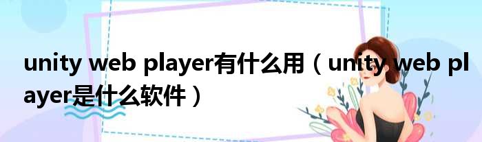 unity web player有什么用(unity web player是什么软件)