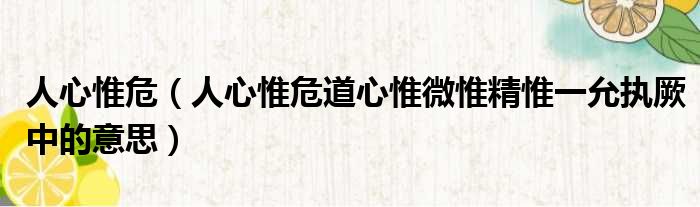 人心惟危(人心惟危道心惟微惟精惟一允执厥中的意思)