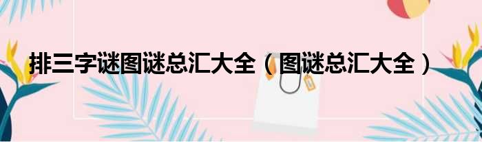 大家好,小东方来为大家解答以上的问题。排三字谜图谜总汇大全,图谜总汇大全这个很多人还不知道,现在让我们一起来看看吧!