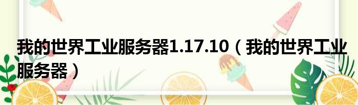 我的世界工业服务器1.17.10(我的世界工业服务器)