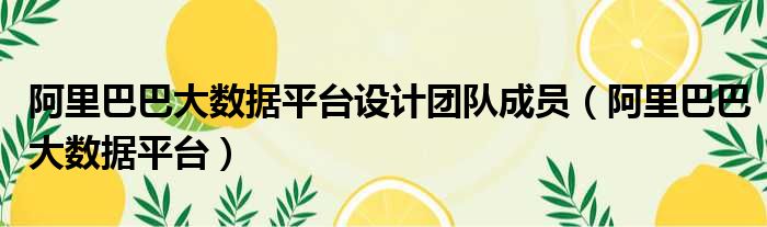 阿里巴巴大数据平台设计团队成员(阿里巴巴大数据平台)
