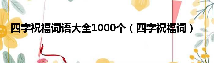 大家好,小东方来为大家解答以上的问题。四字祝福词语大全1000个,四字祝福词这个很多人还不知道,现在让我们一起来看看吧!