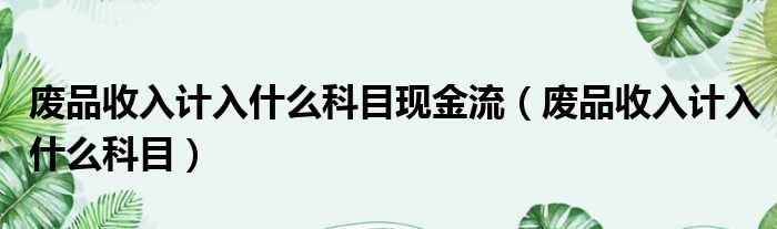 导读 大家好,小东方来为大家解答以上的问题。废品收入计入什么科目现金流,废品收入计入什么科目这个很多人还不知道,现在让我们一起来看看吧!1