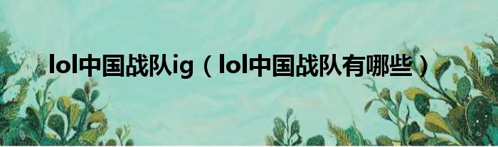 lol中国战队ig(lol中国战队有哪些)