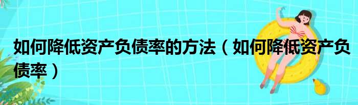 导读 大家好,小活来为大家解答以上的问题。如何降低资产负债率的方法,如何降低资产负债率这个很多人还不知道,现在让我们一起来看看吧!1、【答