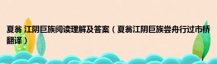 夏翁 江阴巨族阅读理解及答案(夏翁江阴巨族尝舟行过市桥翻译)