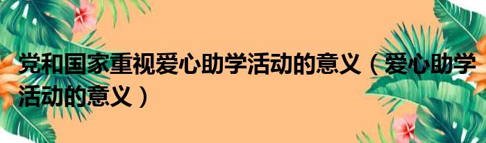 党和国家重视爱心助学活动的意义(爱心助学活动的意义)