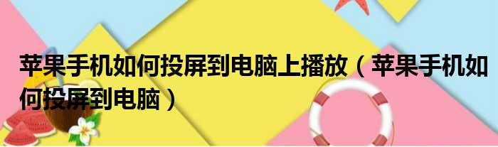 苹果手机如何投屏到电脑上播放(苹果手机如何投屏到电脑)