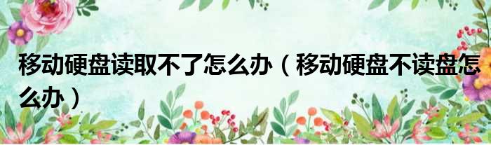 移动硬盘读取不了怎么办(移动硬盘不读盘怎么办)