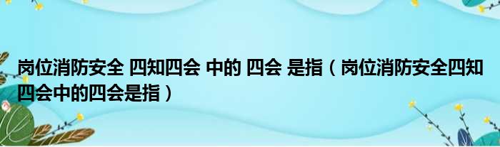 岗位消防安全 四知四会 中的 四会 是指(岗位消防安全四知四会中的四会是指)