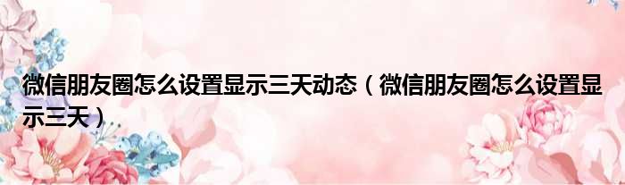 微信朋友圈怎么设置显示三天动态(微信朋友圈怎么设置显示三天)