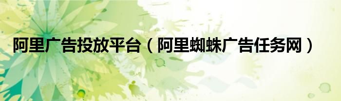 阿里广告投放平台(阿里蜘蛛广告任务网)