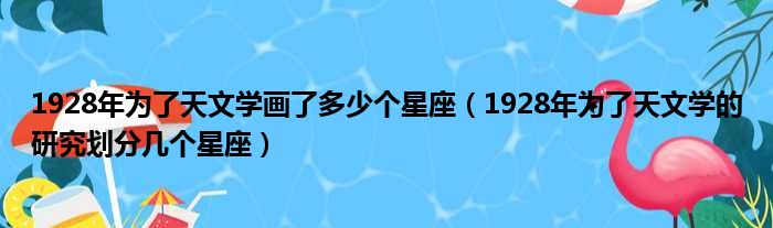 1928年为了天文学画了多少个星座(1928年为了天文学的研究划分几个星座)