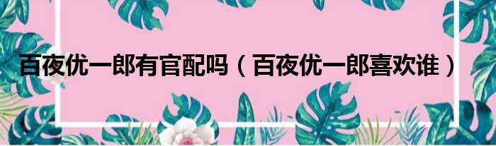 大家好,小活来为大家解答以上的问题。百夜优一郎有官配吗,百夜优一郎喜欢谁这个很多人还不知道,现在让我们一起来看看吧!