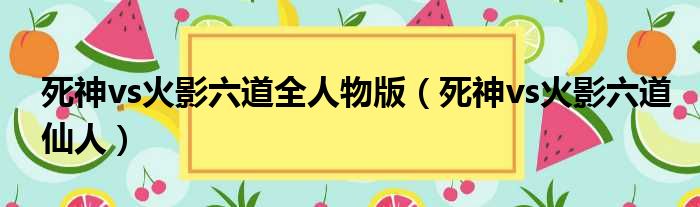 大家好,小活来为大家解答以上的问题。死神vs火影六道全人物版,死神vs火影六道仙人这个很多人还不知道,现在让我们一起来看看吧!