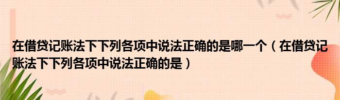 在借贷记账法下下列各项中说法正确的是哪一个(在借贷记账法下下列各项中说法正确的是)