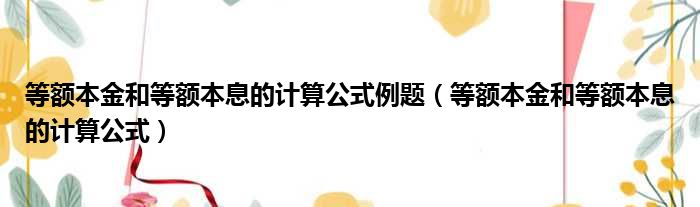 等额本金和等额本息的计算公式例题(等额本金和等额本息的计算公式)