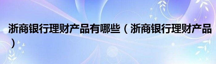 浙商银行理财产品有哪些(浙商银行理财产品)