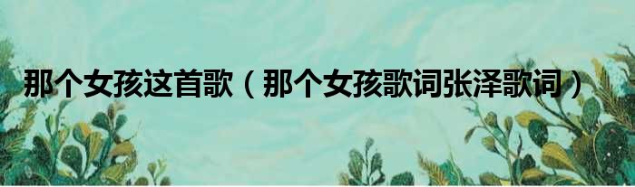 那个女孩这首歌(那个女孩歌词张泽歌词)