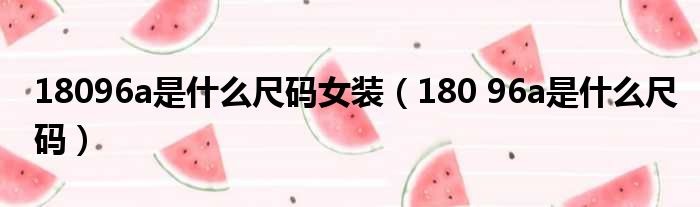 导读 大家好,小活来为大家解答以上的问题。18096a是什么尺码女装,180 96a是什么尺码这个很多人还不知道,现在让我们一起来看看吧!1、180 96a