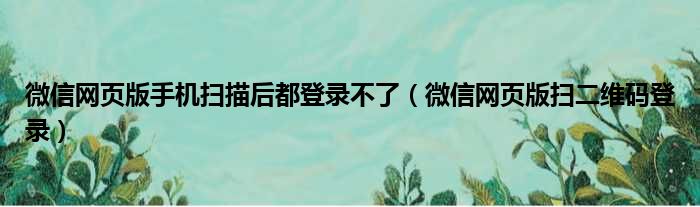 微信网页版手机扫描后都登录不了(微信网页版扫二维码登录)