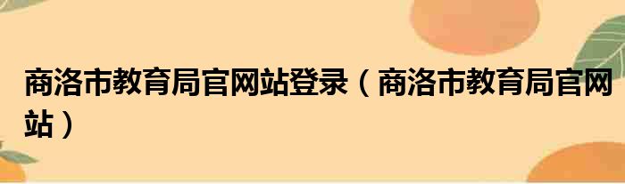 商洛市教育局官网站登录(商洛市教育局官网站)