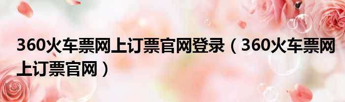 360火车票网上订票官网登录(360火车票网上订票官网)