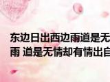 大家好,小东方来为大家解答以上的问题。东边日出西边雨道是无情却有情的哲学道理,东边日出西边雨 道是无情却有情出自 何解这个很多人还 浏览全文>>