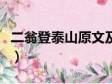 大家好,小东方来为大家解答以上的问题。二翁登泰山原文及注释,二翁登泰山阅读答案这个很多人还不知道,现在让我们一起来看看吧!1、原文 浏览全文>>