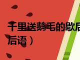 大家好,小东方来为大家解答以上的问题。千里送鹅毛的歇后语后半句,千里送鹅毛的歇后语这个很多人还不知道,现在让我们一起来看看吧!1、千 浏览全文>>