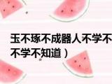 大家好,小东方来为大家解答以上的问题。玉不琢不成器人不学不知道是故古之王者,玉不琢不成器人不学不知道这个很多人还不知道,现在让我们一 浏览全文>>