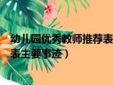 大家好,小东方来为大家解答以上的问题。幼儿园优秀教师推荐表主要事迹范文,幼儿园优秀教师推荐表主要事迹这个很多人还不知道,现在让我们一 浏览全文>>