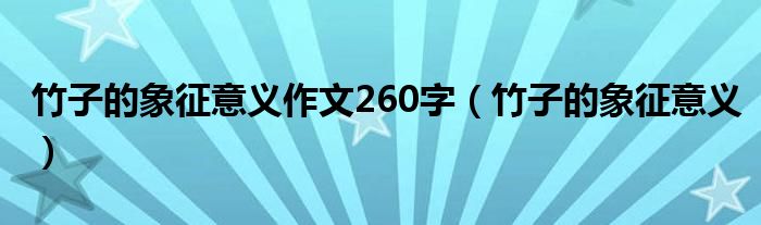 大家好,小方来为大家解答以上问题,竹子的象征意义作文260字,竹子的象征意义很多人还不知道,现在让我们一起来看看吧!