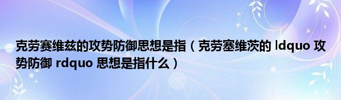大家好,小东方来为大家解答以上的问题。克劳赛维兹的攻势防御思想是指,克劳塞维茨的 ldquo 攻势防御 rdquo 思想是指什么这个很多人还不知道,现在让我们一起来看看吧!