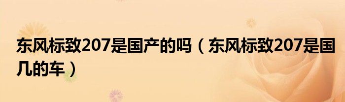 大家好,小太来为大家解答以上问题。东风标致207是国产的吗,东风标致207是国几的车很多人还不知道,现在让我们一起来看看吧!