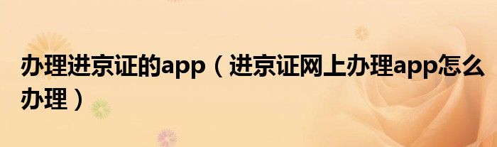 办理进京证的app(进京证网上办理app怎么办理)