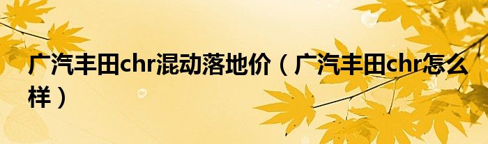 广汽丰田chr混动落地价(广汽丰田chr怎么样)