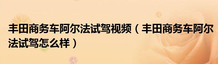 丰田商务车阿尔法试驾视频(丰田商务车阿尔法试驾怎么样)