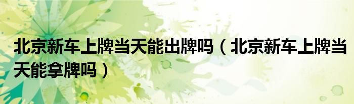 北京新车上牌当天能出牌吗(北京新车上牌当天能拿牌吗)
