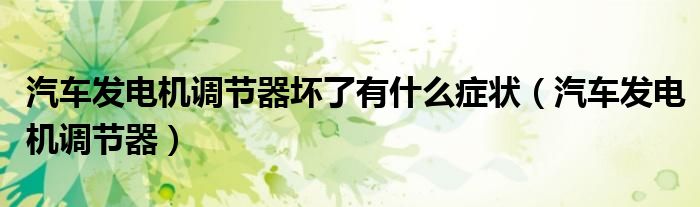 汽车发电机调节器坏了有什么症状(汽车发电机调节器)