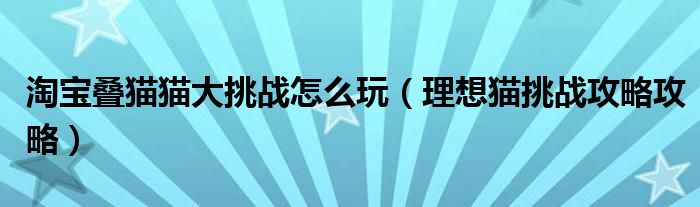 淘宝叠猫猫大挑战怎么玩(理想猫挑战攻略攻略)