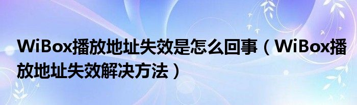 导读 大家好,小生来为大家解答以上问题。WiBox播放地址失效是怎么回事,WiBox播放地址失效解决方法很多人还不知道,现在让我们一起来看看吧!Wi