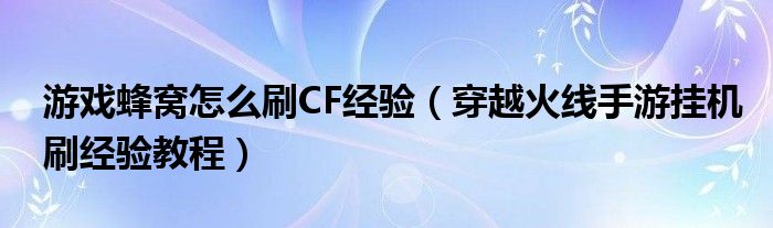 导读 大家好,小生来为大家解答以上问题。游戏蜂窝怎么刷CF经验,穿越火线手游挂机刷经验教程很多人还不知道,现在让我们一起来看看吧!新手用户