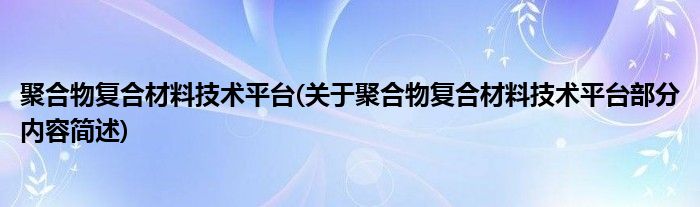 聚合物复合材料技术平台(关于聚合物复合材料技术平台部分内容简述)
