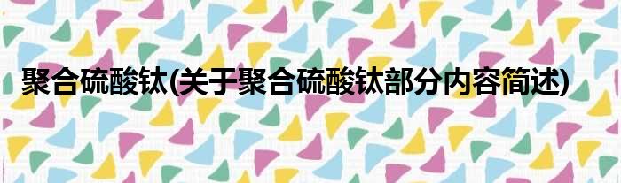 聚合硫酸钛(关于聚合硫酸钛部分内容简述)