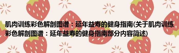 导读 大家好,今天小方来说说一篇关于肌肉训练彩色解剖图谱:延年益寿的健身指南,关于肌肉训练彩色解剖图谱:延年益寿的健身指南部分内容简述的