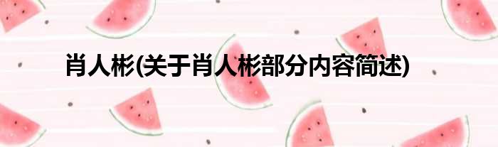 大家好,今天小方来说说一篇关于肖人彬,关于肖人彬部分内容简述的文章,那么现在就为大家来简单介绍下,希望对各位小伙伴们有所帮助。